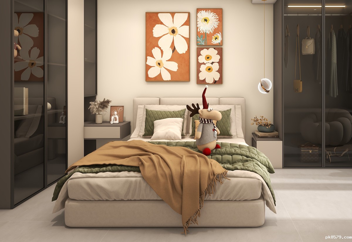 卧室的家具布置以个人需求为中心,在实用的前提下进行适当的装饰布置,家具的布置尽量沿着墙壁摆放,把活动空间集中在卧室的中心,这样的空间布局更显空间大。同时也能增添更多的收纳空间。